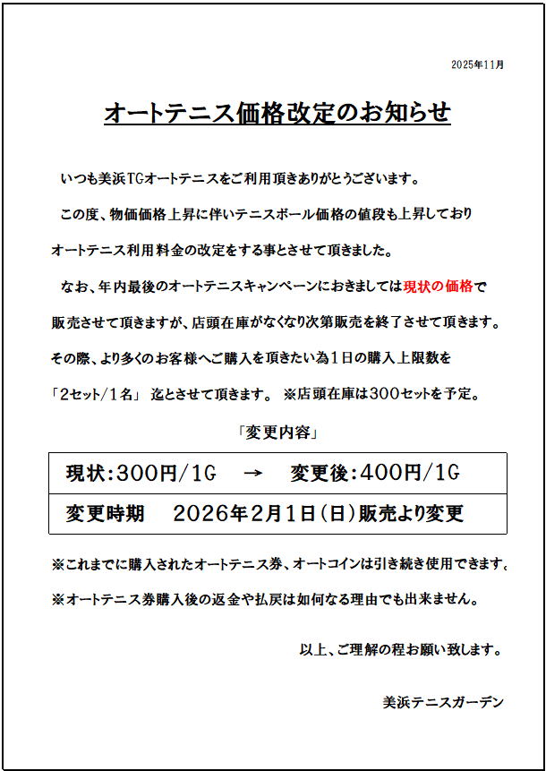 オートテニスご利用の注意事項