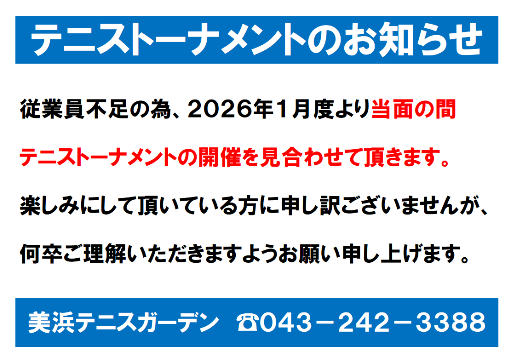 - 南市川TG・美浜TGのスクール生の方は支払い画面でクーポンコードを入力することで料金が割引となります。スクール生ではない方が誤ってクーポンコードを入力した場合は大会当日に差額を申し受けます。スクール生の方でクーポンコードの入力を忘れて支払ってしまった方はフロントにお申し付けください。